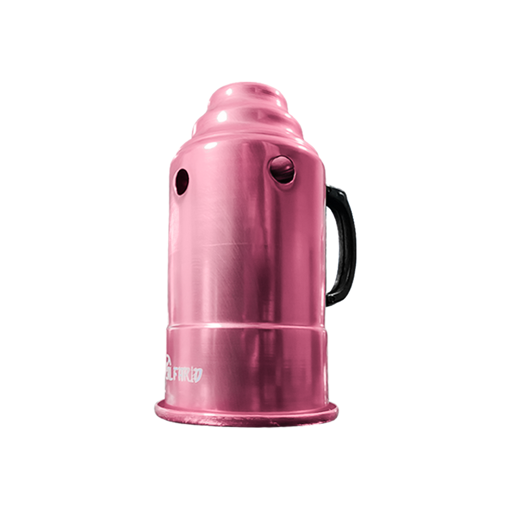 Abafador para narguile marca Al Farid, modelo KAAB, em alumínio com pintura anodizada. 11 cm de diâmetro e 23 cm de altura. Com cabo/alça em baquelite, não esquenta.