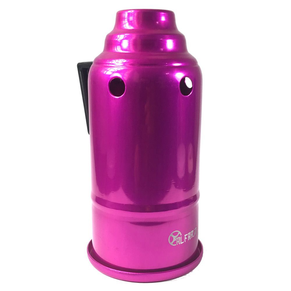 Abafador para narguile marca AL FARID, modelo KAAB, em alumínio com pintura epóxi ou anodizada. 11 cm de diâmetro e 23 cm de altura. Com cabo/alça em baquelite, não esquenta.