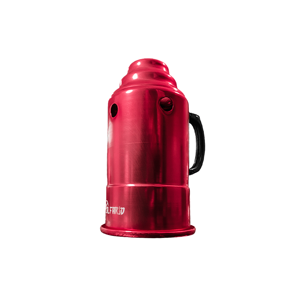 Abafador para narguile marca Al Farid, modelo KAAB, em alumínio com pintura anodizada. 11 cm de diâmetro e 23 cm de altura. Com cabo/alça em baquelite, não esquenta.