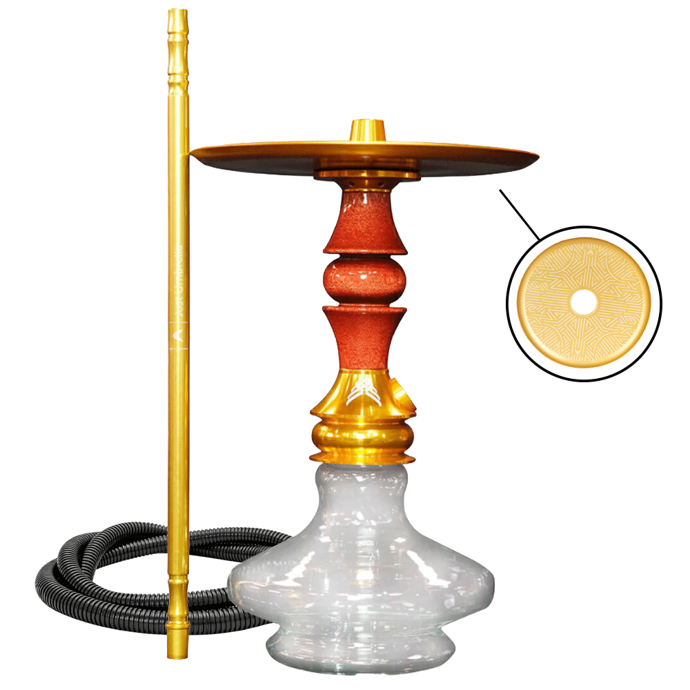Narguile Completo Marajah Hookah Umbrella Nano - Dourado Vermelho Brilhante