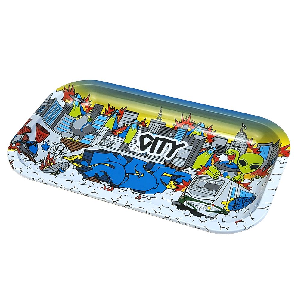 A coleção de bandejas Alien está disponível nos temas Space, Trip e City. Essa nova coleção conta a história em três momentos de uma passagem um tanto quanto turbulenta de um ET em nossa plante terra.