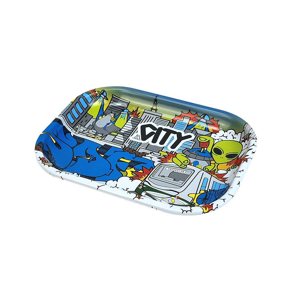 A coleção de bandejas Alien está disponível nos temas Space, Trip e City. Essa nova coleção conta a história em três momentos de uma passagem um tanto quanto turbulenta de um ET em nossa plante terra.