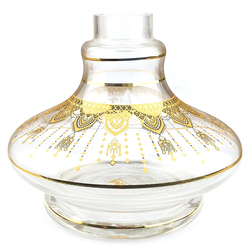 Vaso para narguile, da marca MD Hookah. Vaso feito de vidro com detalhes em dourado. Seu encaixe para stem é compatível com narguiles nacionais ou importados. Pede alguns cuidados na hora da limpeza, por se tratar de vidro com detalhamento a mão é extremamente proibido passar bucha com sabão ou qualquer outro tipo de produto químico podendo assim afetar a pintura. Não haverá troca caso o produto apresente mal uso.